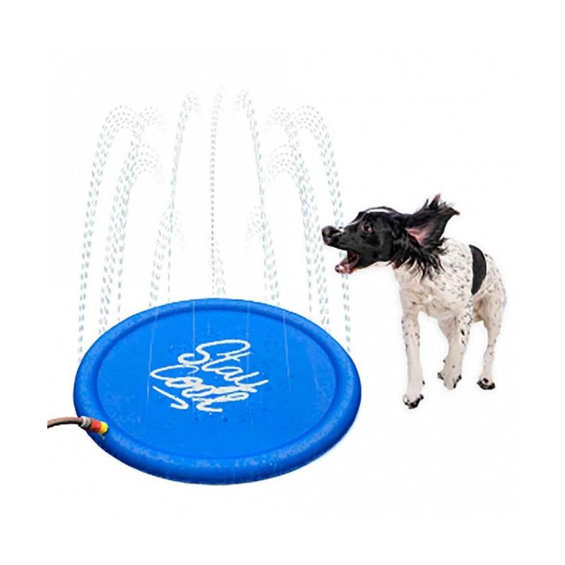 Die Sprinklermatte verschafft Hunden an heißen Tagen eine angenehme Abkühlung. Die robuste Matte ist am Rand mit verschiedenen kleinen Öffnungen ausgestattet, aus denen Wasser spritzt, sobald die Matte mithilfe des mitgelieferten Verbindungsstücks an einen Wasserschlauch angeschlossen wird. Der Hund braucht sich also nur auf auf die Matte legen und kann die kühlenden Wasserstrahlen genießen.