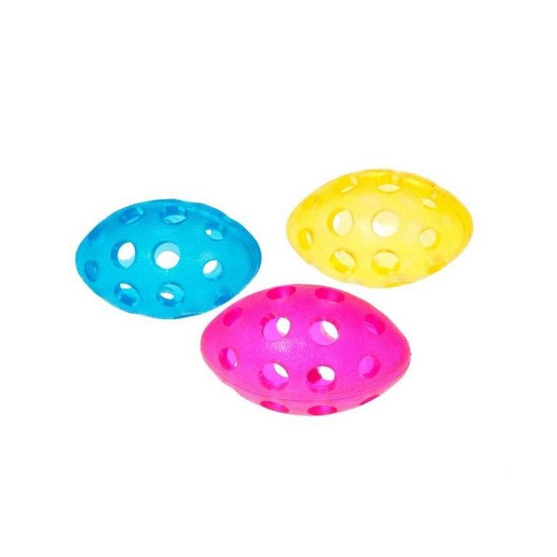 Dieser Football mit seinen vielen Löchern lässt sich besonders einfach im Maul transportieren und bietet tollen Spielspaß. Um das Spiel noch spannender zu machen, lassen sich durch die Löcher auch Leckerlies in den Ball stecken.