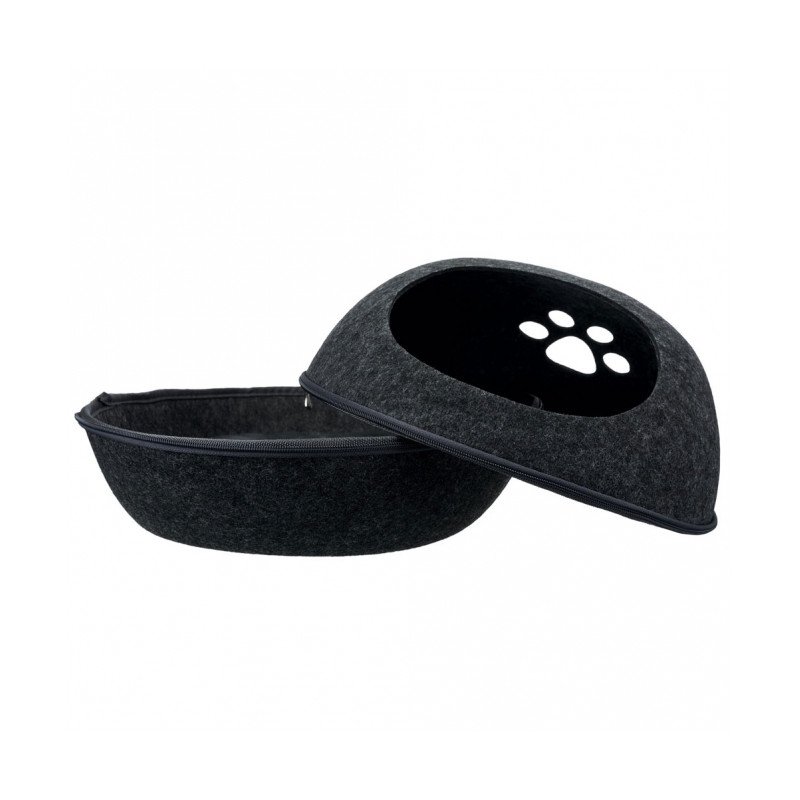 Die Kuschelhöhle Liva besteht aus formstabilem Filz (Polyester), welches isolierend und schmutzabweisend wirkt.