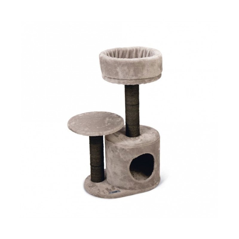 Der Karlie Kratzbaum Arvid ist eine praktische Schlaf- und Kratzmöbelkombination. Auf drei Ebenen findet die Katze hier Raum zum Schlafen, Spielen und Beobachten. In der mit Plüsch bezogenen Schlafhöhle können sich Stubentiger ungestört ausruhen und die ebenfalls mit Plüsch gearbeiteten Podeste sind hervorragende Aussichtspunkte. Das oberste Podest hat einen weichen, hochgezogenen Rand. Zwei mit Sisal umwickelte Säulen befriedigen das natürliche Kratzbedürfnis.
