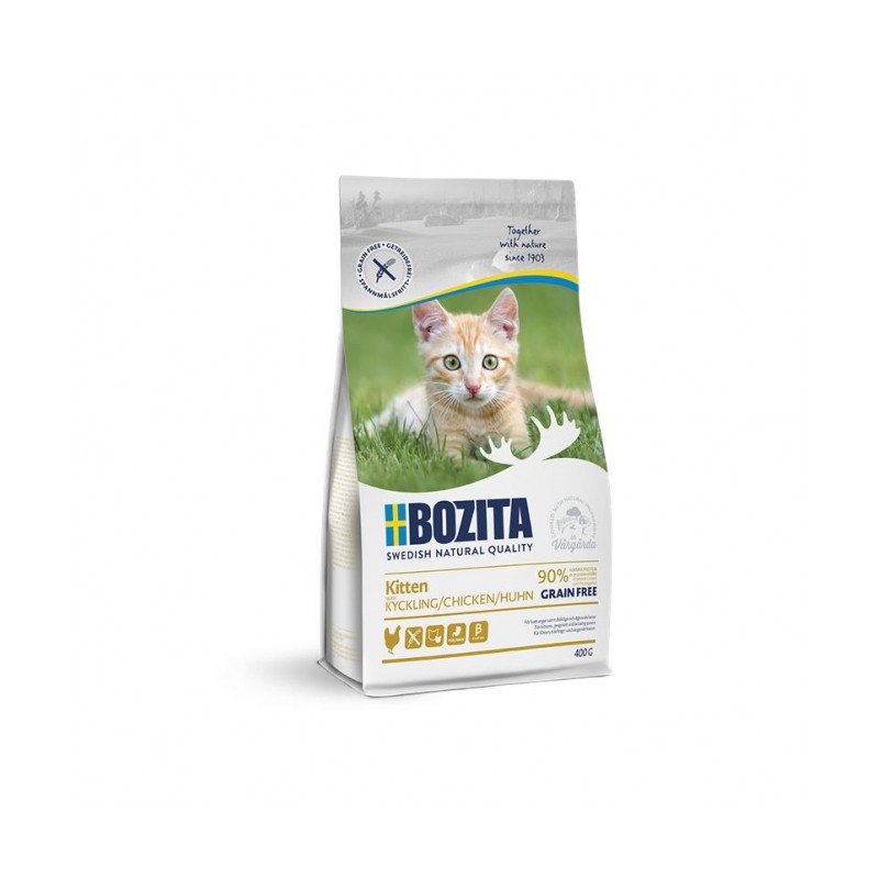 Bozita Kitten Getreidefrei Huhn ist ein Alleinfuttermittel für Kitten und junge Katzen mit speziell entwickelten kleinen Kroketten. Das Futter deckt den hohen Energie- und Proteinbedarf der jungen Katze und bietet optimale Bedingungen für Wachstum und Muskelaufbau. Der verhältnismäßig hohe Energiegehalt eignet sich auch hervorragend für die Zucht von Katzen, in der Trächtigkeit und während der Säugezeit. Huhn und Lachs sind besonders schmackhaft und leicht verdaulich, sodass das Kitten die Nährstoffe leichter aufnehmen kann.