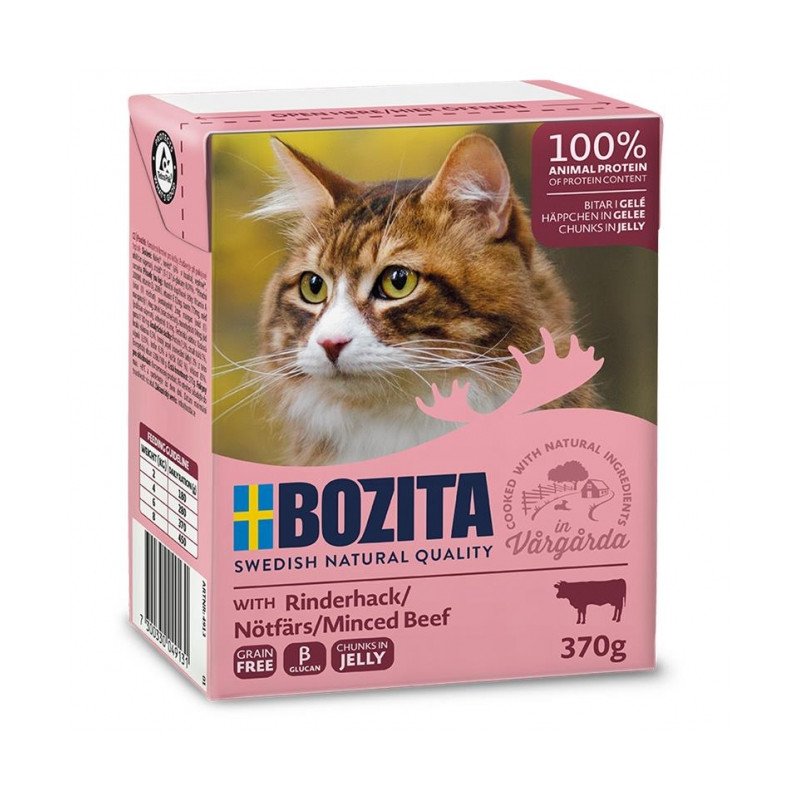 Bozita Häppchen in Gelee mit Rinderhack ist ein schmackhaftes Futter für Katzen welches auf Rohstoffen höchster Qualität basiert.