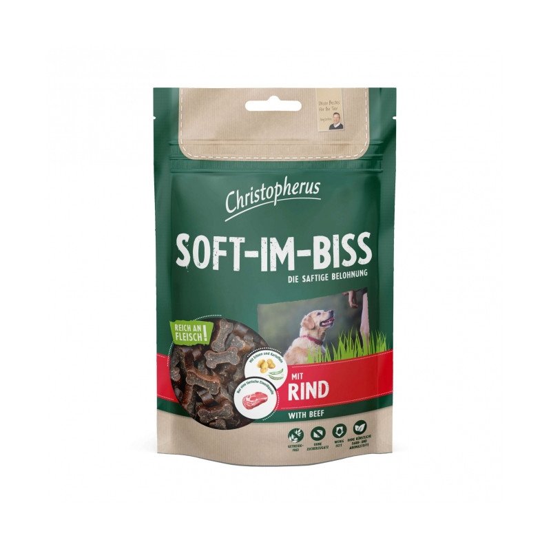 Prima gemacht! Christopherus Soft-Im-Biss mit viel leckerem Fleisch belohnt die besonderen Momente bei Ausbildung, Training, Sport, beim Spazierengehen oder einfach als kleines Leckerli zwischendurch.