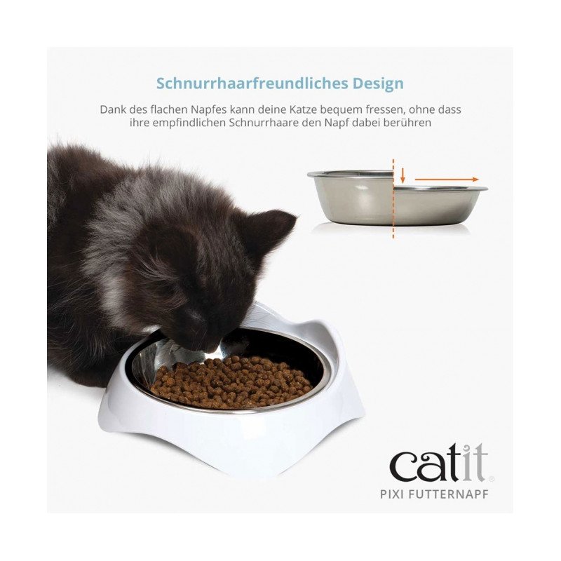 Der flache Napf berührt nicht die empfindlichen Schnurrhaare deiner Katze