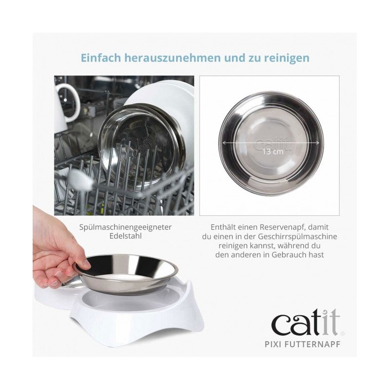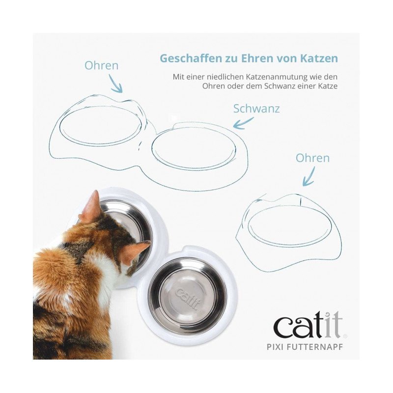 Bei unserem Catit Napf haben wir die tatsächlichen Ansprüche von Katzen und Katzenhaltern berücksichtigt. Wir haben uns Zeit genommen, ein Design zu entwickeln, das deinen Stubentiger optimal bei seinem individuellen Fressverhalten unterstützt. Was dich bei einem Futternapf von Catit erwartet? Ein ergonomisches Format, sodass deine Katze beim Fressen eine natürliche Haltung einnehmen kann, schnurrbarthaarfreundliche Eigenschaften und eine komfortable Größe. Unser rutschfester Futternapf ist aus hochwertigem Edelstahl gefertigt und sowohl für Trocken- als auch für Nassfutter geeignet. Serviere deiner Katze ab jetzt jeden Tag die richtige Portion in einem Fressnapf, den deine Katze lieben wird.