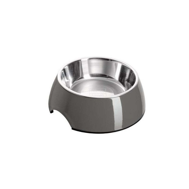 Der formschöne und trendige Melamin-Napf passt sich mit seinem eleganten und unauffälligen Design jeder Umgebung perfekt an. Der Napf mit Melamin-Gehäuse ist nicht nur schick, er ist vor allem auch kratz- und stoßresistent sowie besonders pflegeleicht. Sehr praktisch ist der herausnehmbare Innennapf aus Edelstahl. Ein umlaufender Gummirand am Napfboden sorgt für einen sicheren Stand und hemmt ein Verrutschen des Napfes bei übermütigem Fress- oder Trinkverhalten. Der Napf kann einfach abgewaschen oder in der Spülmaschine gereinigt werden.