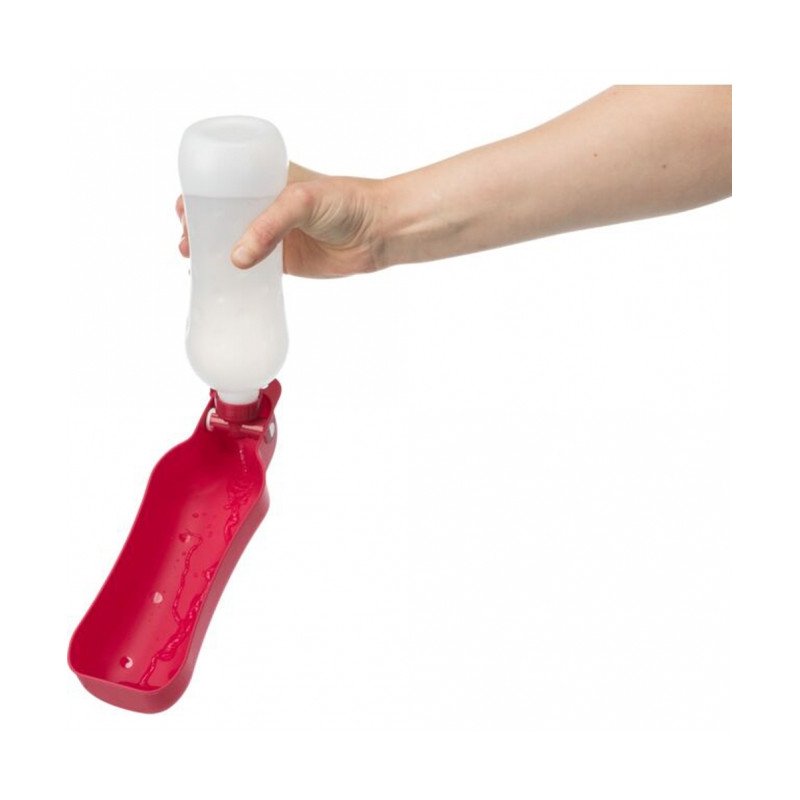 Durch die 2in1-Funktion sparst du Platz und ermöglichst deinem Vierbeiner in gewohnter Art zu trinken. Die Flasche wird mit Wasser gefüllt, in den dazugehörigen Napf geklappt und verstaut. Legst du eine Pause ein, kannst du deinem Hund über den Wasserspender etwas zu Trinken geben. Dazu stellst du die Flasche wieder aufrecht, ziehst diese ein Stückchen hoch und lässt die Flüssigkeit in den Wassernapf fließen. Frisches und sauberes Wasser ist durch diesen praktischen Ausflugsbegleiter jederzeit und überall verfügbar.