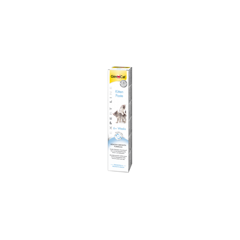 Die GimCat Kitten Paste wurde speziell für die Bedürfnisse von jungen Katzen (ab 6 Wochen) entwickelt. Die einzigartige Healthy-Growth-Formula enthält: ? Optimales Calcium/Phosphor-Verhältnis zur Förderung des Wachstums und Knochenaufbaus ? 12 Vitamine, Spurenelemente und Mineralstoffe für ein starkes Immunsystem ? Leinöl und Fischöl für einen gesunden Zellschutz ? Taurin zur Stärkung der Sehkraft und Herzfunktion ? Eigelb zur Deckung des essentiellen Arachidonsäurebedarfs