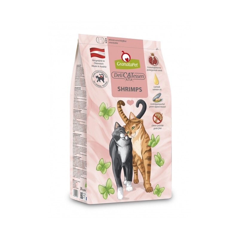 Zusammensetzung: Shrimps und Putenfleisch 42 % (Shrimps 23 %, Pute 19 %, getrocknet und fein vermahlen), Kartoffelflocken (aufgeschlossen), Geflügelfett, Granatapfelkerne 3 %, Cellulosepulver, Lachsöl 2 %, Mineralstoffe, Katzenminzeblätter (fein vermahlen), FOS (Fructooligosaccharide), neuseeländische Grünlippmuschel 0,1 % (fein vermahlen, von Natur aus reich an Glucosamin und Chondroitin), Yucca schidigera