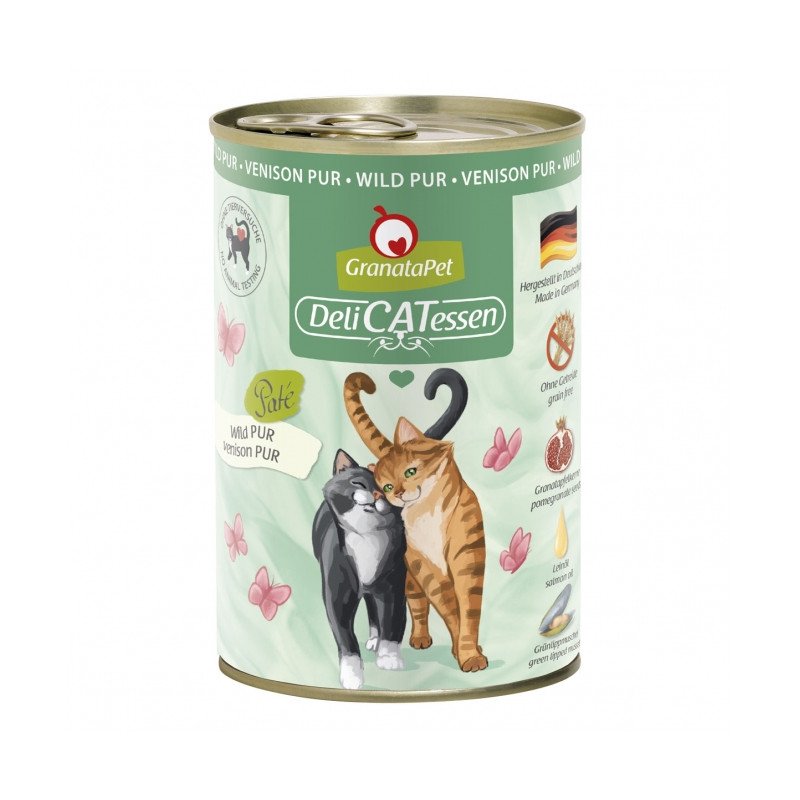 Muskelfleisch, Herz, Lunge, Leber), Wildbrühe 24,9 %, Granatapfelkerne 1 %, Leinöl 1 %, Mineralstoffe 1 %, Grünlippmuschel 0,1 %