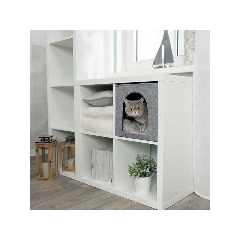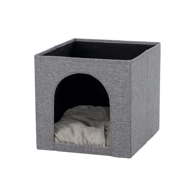 Die Kuschelhöhle Ella ist mit einem modernen Webstoff bezogen und ist faltbar. Sie passt perfekt in z.B. IKEA Kallax oder Expedit Regale. Für ein bequemes Plätzchen sorgt das Wendekissen mit Plüsch-Bezug, welches per Handwäsche gereingt werden kann.