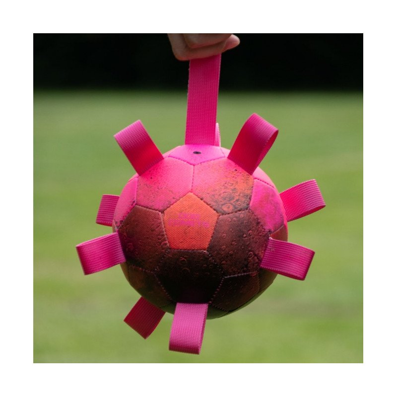 Dieser hochwertige Ball besteht ausdrei Schichten und ist daher extrem stark. Der innere Anti-Leck-Ball ist aus Kautschuk, umgeben von einer Baumwollschicht und die Außenseite ist aus PU-Material gefertigt. Dies macht den Ball weich, langlebig undlässt ihn gut springen. Sicher für die Zähne des Hundes und durch dieSchlaufen perfekt zum Aufnehmen und Wegwerfen. Der Ball wird einfach mit der mitgelieferten Pumpe aufgepumpt.