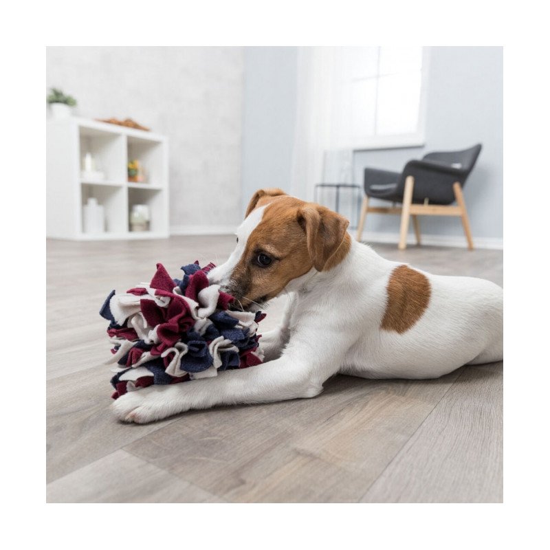 Die zwei unterschiedlichen Fransenlängen sorgen für eine langsamere Futteraufnahme und verhindern, dass dein Tier ins Schlingen gerät. Anstatt Leckerlis kannst du auch das normale Trockenfutter deines Hundes verwenden und die Fütterung so interessanter gestalten. Außerdem eignet sich das Spiel für demente Hunde, die morgens Schwierigkeiten haben, in den Tag zu starten, und abends schwer zur Ruhe kommen. Der Ball gibt ihnen Struktur und sorgt für Beschäftigung, die für Vierbeiner mit Demenz gut zu bewältigen ist.