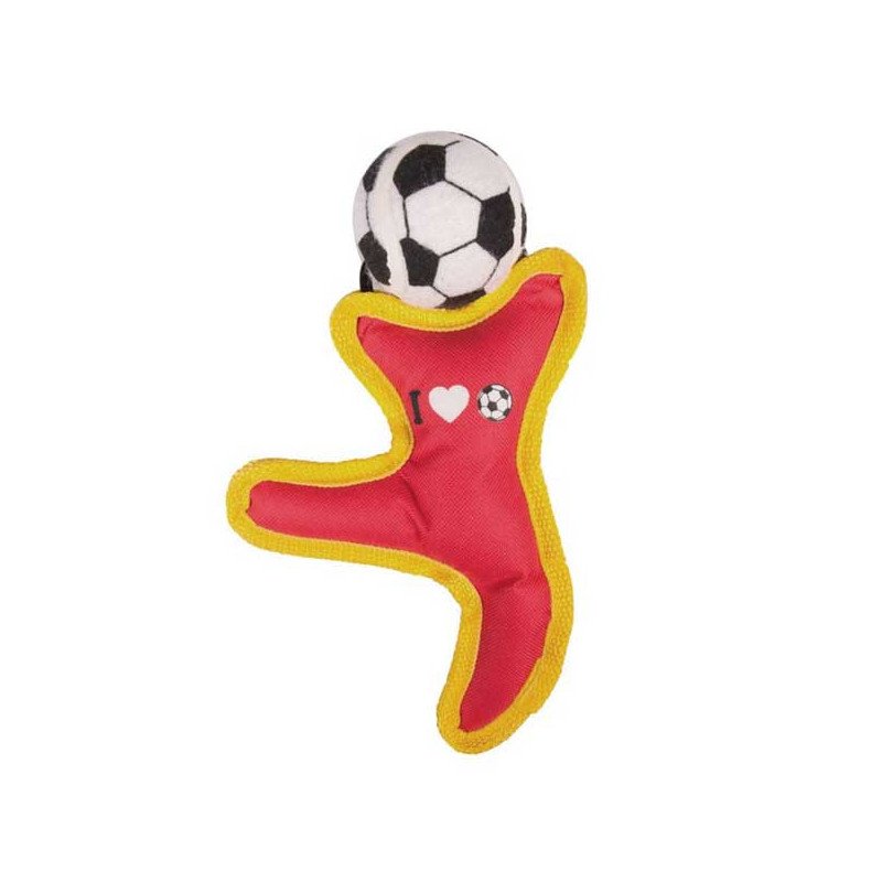 Der lustige Fußballspieler besteht aus Nylon mit einem Tennisball mit Fußballaufdruck. Das interaktive Apportierspielzeug ist aus robusten Materialien gefertigt und mit einem Squeaker ausgestattet.