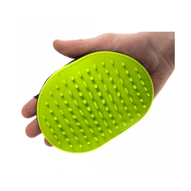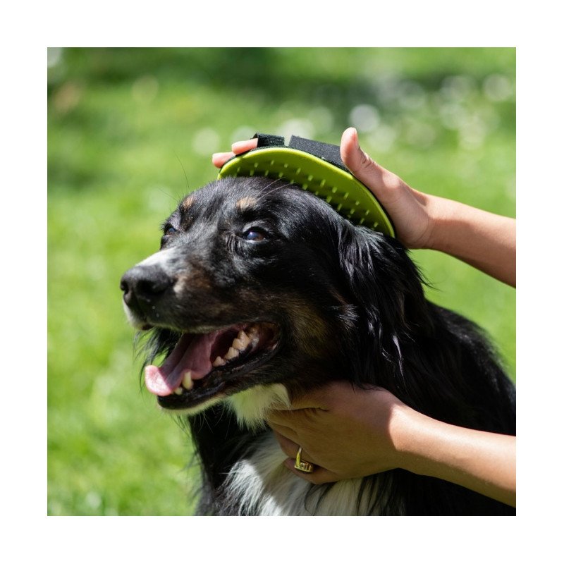 Mit dem Waschhandschuh lässt sich Shampoo perfekt im Hundefell verteilen. Durch die Silikonnoppen wird es dabei nicht nur oberflächlich aufgetragen, sondern mühelos auch tiefer im Fell verteilt. Zudem wird die Haut des Hundes gleichzeitig massiert und so die Durchblutung gefördert.