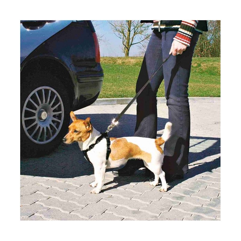 Das Auto-Sicherheitsgeschirr des Qualitätsherstellers Trixie besteht aus robustem Nylon und ist auch als Führgeschirr verwendbar.