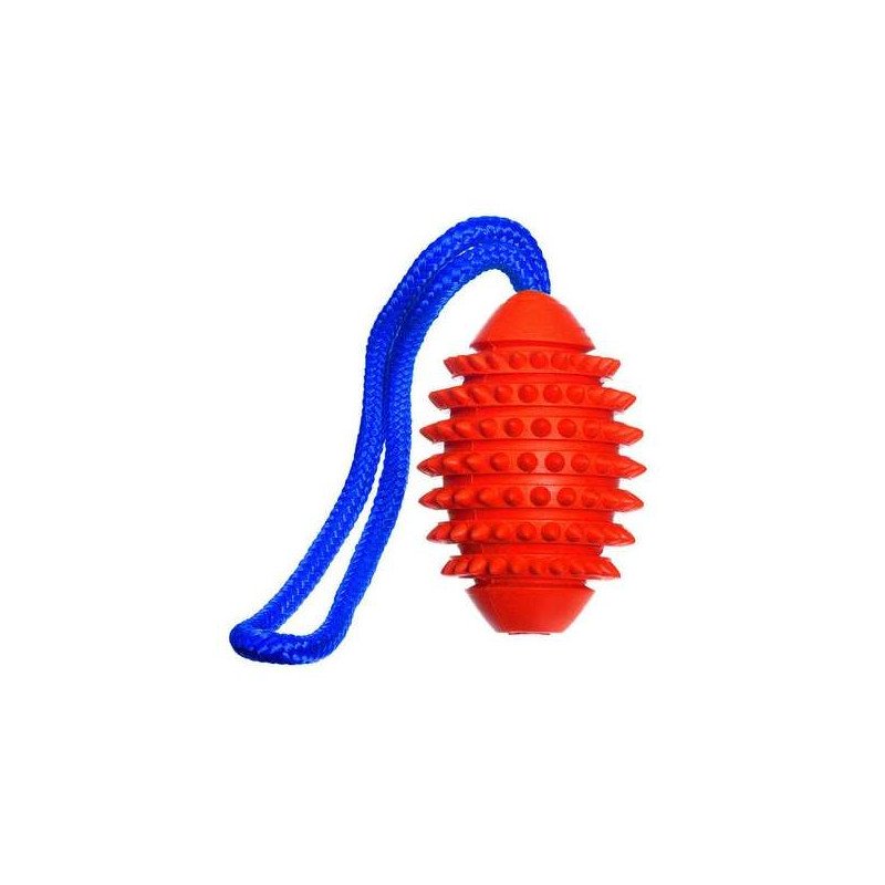 Mit dem Boomer Vollgummi Aqua Football bieten Sie Ihrem Hund stundenlangen Spielspaß im und am Wasser. Mit Hilfe der Kordel lässt sich der Football super werfen. Der Ball ist schwimmfähig und die Farbe orange ist im Wasser besonders gut sichtbar. Ideal zum Apportieren, Trainieren und Ausbilden. Massiert und pflegt 'spielend' Gebiß und Zähne. Mit Vanille-Aroma.