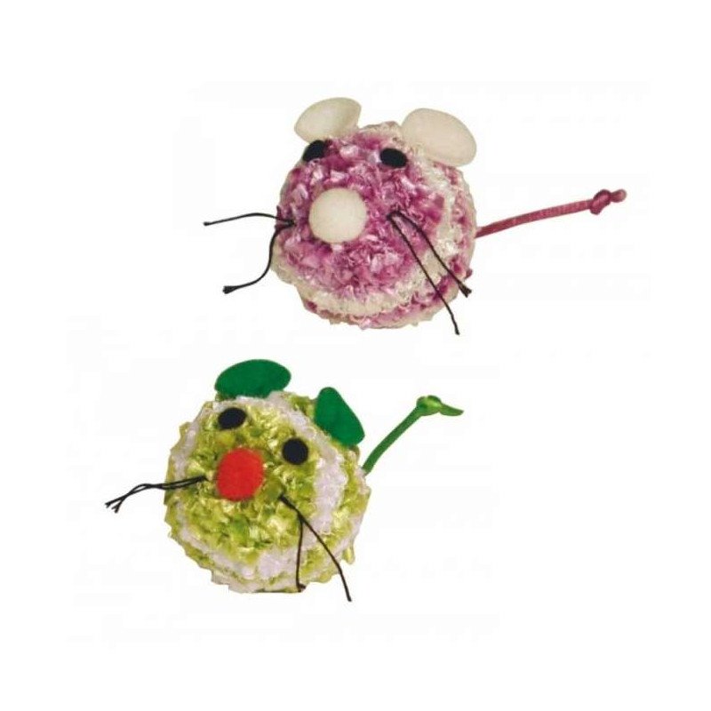 Zwei niedliche Wollmäuse zum Spielen und Jagen mit einer Größe von ca. 4,5 cm.