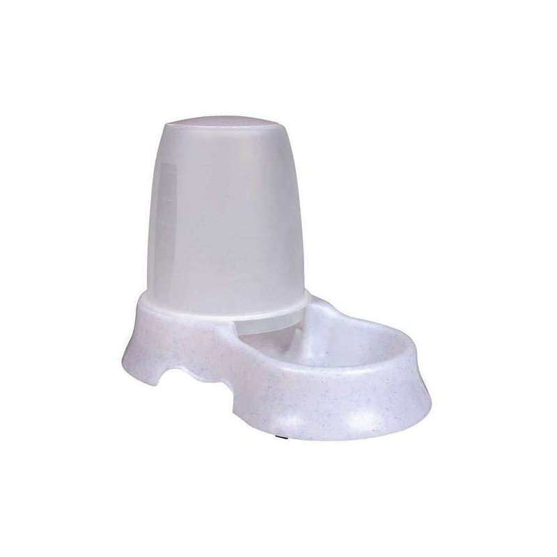 Der Futter- und Wasserspender aus Kunststoff besteht jeweils aus einem Unterteil und einem Aufsatzbehälter mit zwei verschiedenen Öffnungen für Wasser bzw. Futter. Rutschfest durch Gummifüße. Der Spender eignet sich für Katzen und kleine Hunde.