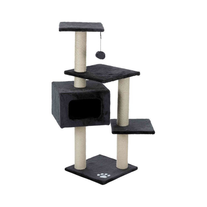 Der Trixie Kratzbaum Palamos mit einer Höhe von 109 cm besteht aus einer Bodenplatte, die eine Fläche von 39 x 39 cm hat, einer gemütlichen Höhle und mehreren Liegeflächen. Die 5 Sisalstämme haben einen Durchmesser von 9 cm, die Liegeplatten sind 39 x 39 cm (mittlere Platte) bzw. 29 x 29 cm groß (oberste, sowie unterste Platte). Die Höhle hat die Maße 35 x 24 x 35 cm und ist mit einer Plüscheinlage ausgestattet. Damit keine Langeweile aufkommt, ist der Kratzbaum außerdem mit einem Spielzeug am Gummiband bestückt.