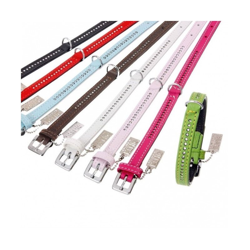 Das Halsband ist aus weichem Feinleder in bester Verarbeitungsqualität gefertigt. Der Strassbesatz ist sicher zwischen den Lagen des Leders eingenäht. Die Steine bestechen durch ihre glasreine Qualität und das feurige Funkeln im Wechselspiel des Lichtes.