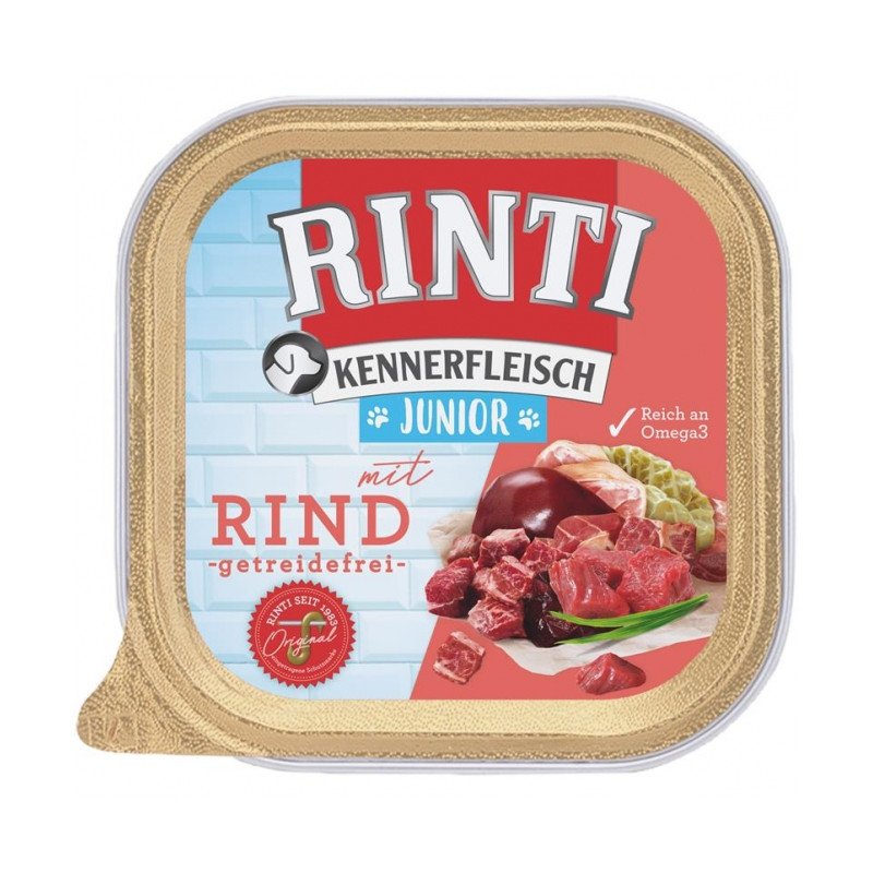 RINTI KENNERFLEISCH JUNIOR mit 65% Fleisch, Ballaststoffen und Omega 3 (im Fischöl).