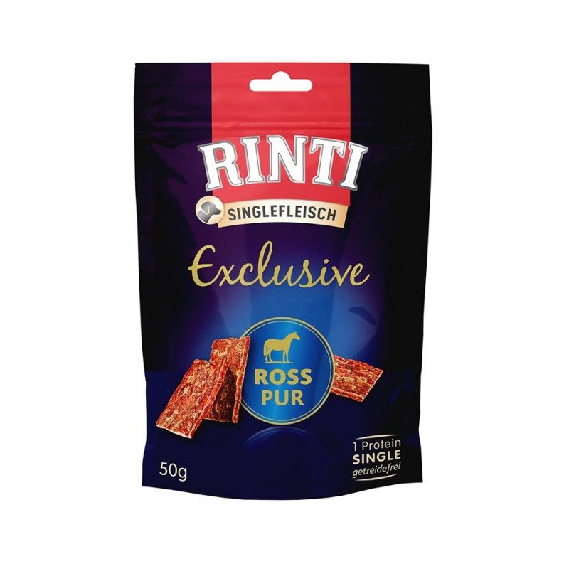 RINTI EXCLUSIVE ROSS PUR ist ein Snack für Kennerhunde mit besonderen Ansprüchen. In Premiumqualität mit einer Proteinquelle - pur