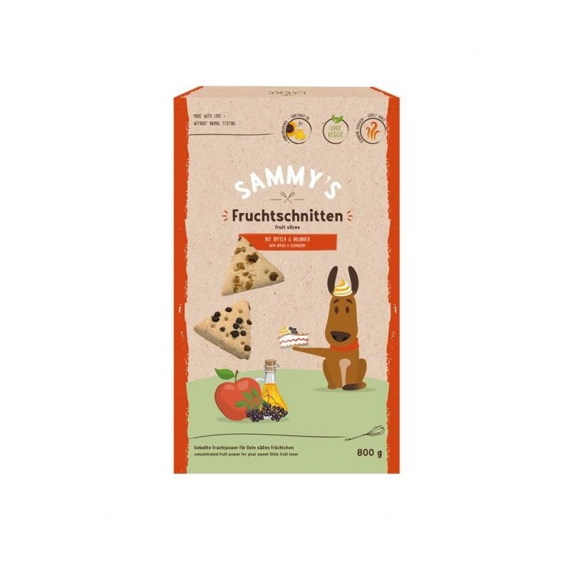 Sammy's knackige Fruchtschnitten mit einem Mix aus sonnengereiften, getrockneten Äpfeln und fruchtigen Holunderbeeren ist die geballte Fruchtpower für Deinen aktiven Entdecker.