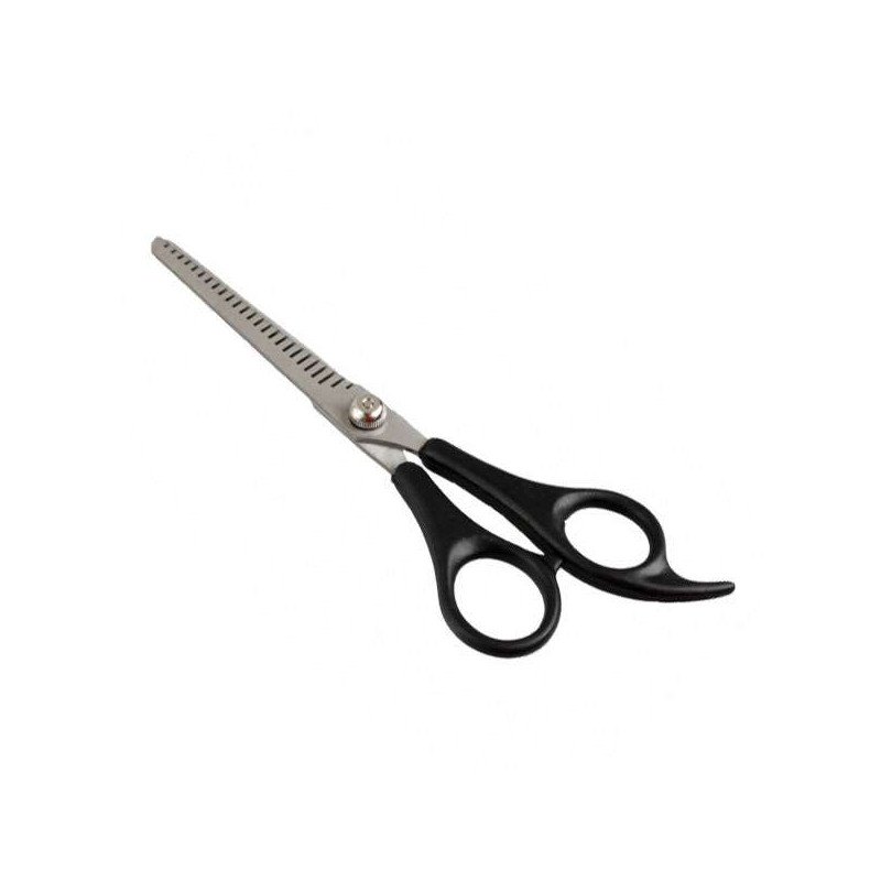 Die einseitige Effilierschere eignet sich zum Ausdünnen und Stylen des Fells. Stark verfilzte Haare können mit entsprechender Sorgfalt geschnitten werden.
