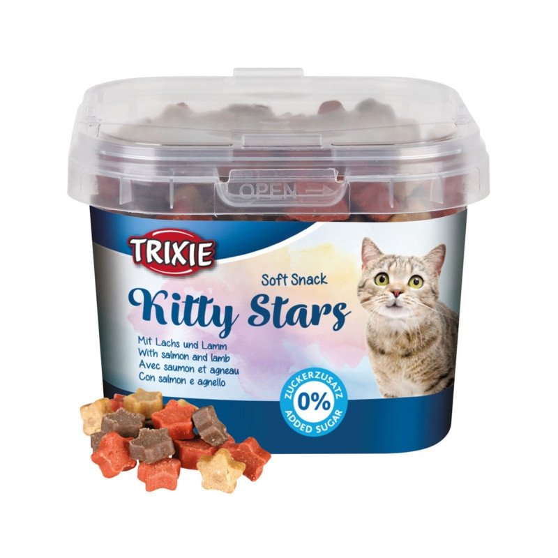 Die Soft Snack Kitty Stars mit Lachs und Lamm sind ein leckerer Snack für zwischendurch und eignen sich ideal als kleine Belohnung.