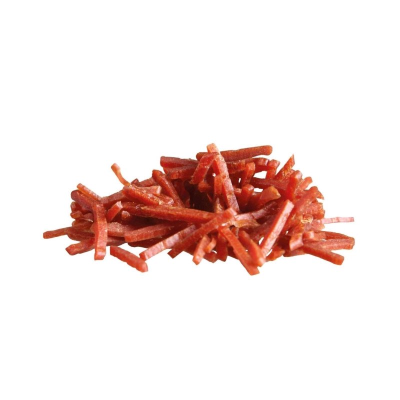 Zusammensetzung: Thunfisch (55 %), Hühnerfleisch (20 %), Kartoffelstärke, Glycerin, Sorbitol, Mineralstoffe | glutenfreie Rezeptur | Kühl und trocken lagern.