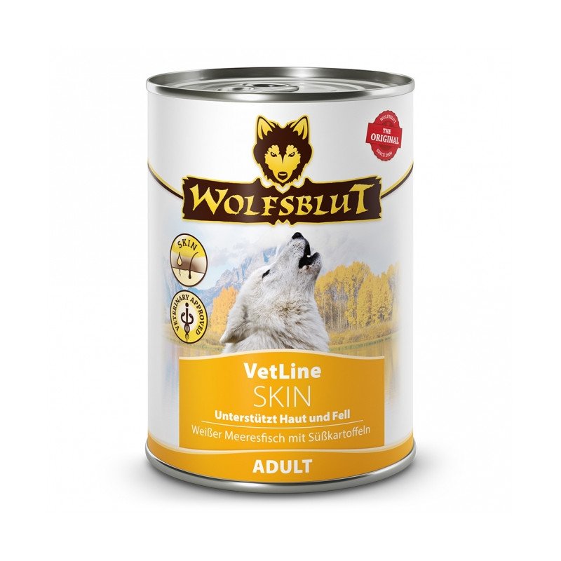 Wolfsblut VetLine Skin ist ein Diät-Alleinfuttermittel für ausgewachsene Hunde zur Unterstützung der Hautfunktion bei Dermatose und übermäßigem Haarausfall und zur Minderung von Ausgangserzeugnis- und Nährstoffintoleranzerscheinungen in Verbindung mit chronischem Juckreiz, Otitis externa und Magen-Darm-Erkrankungen.