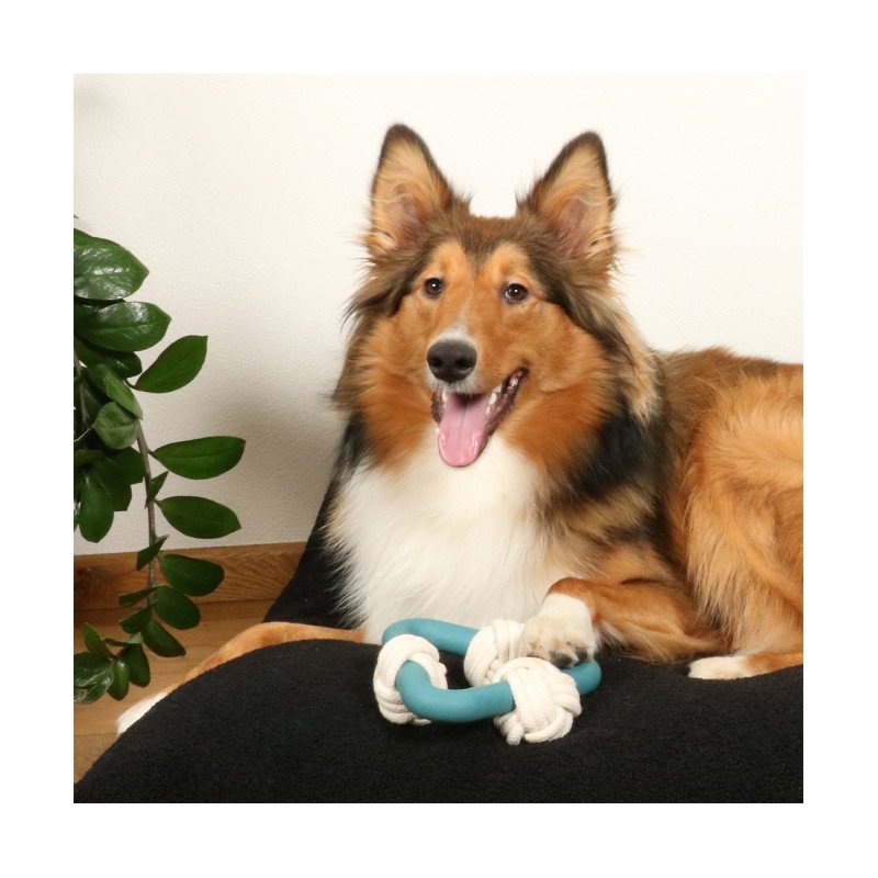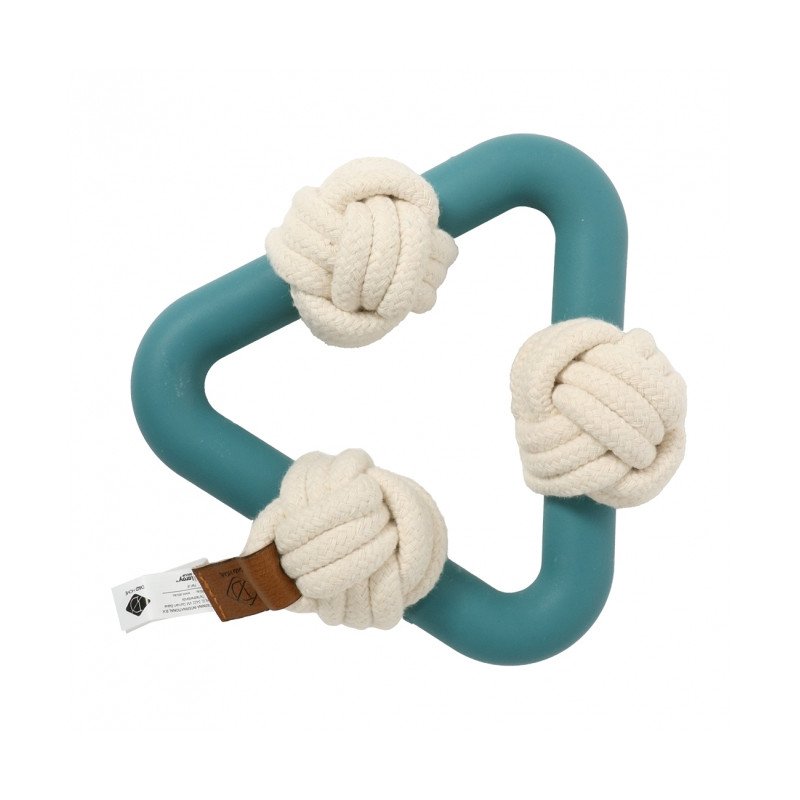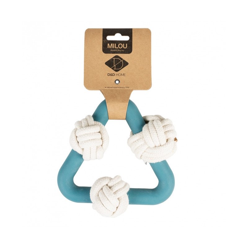 Das D&D Hundespielzeug Milou ist ein Hundespielzeug aus robustem TPR-Gummi in trendigen Farben. Es ist außerdem mit einem Baumwollseil ausgestattet. Das Baumwollseil ist ein beliebtes Kaumaterial für Hunde und pflegt ihre Zähne und ihr Zahnfleisch. Die dreieckige Form ist ideal für Apportier- und Tauziehspiele.